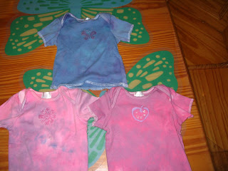 Baby t-shirts I dyed and stamped for Daniella's shower this weekend. I know the stamps are crooked, it gives the shirts character, ok?